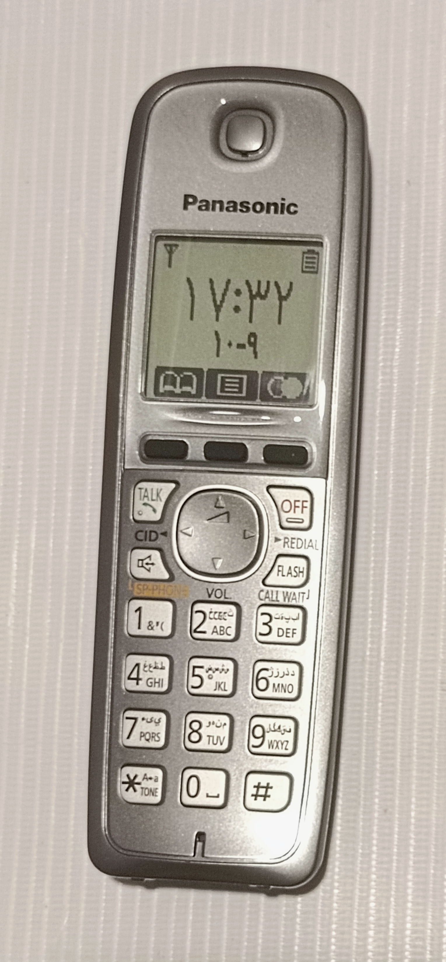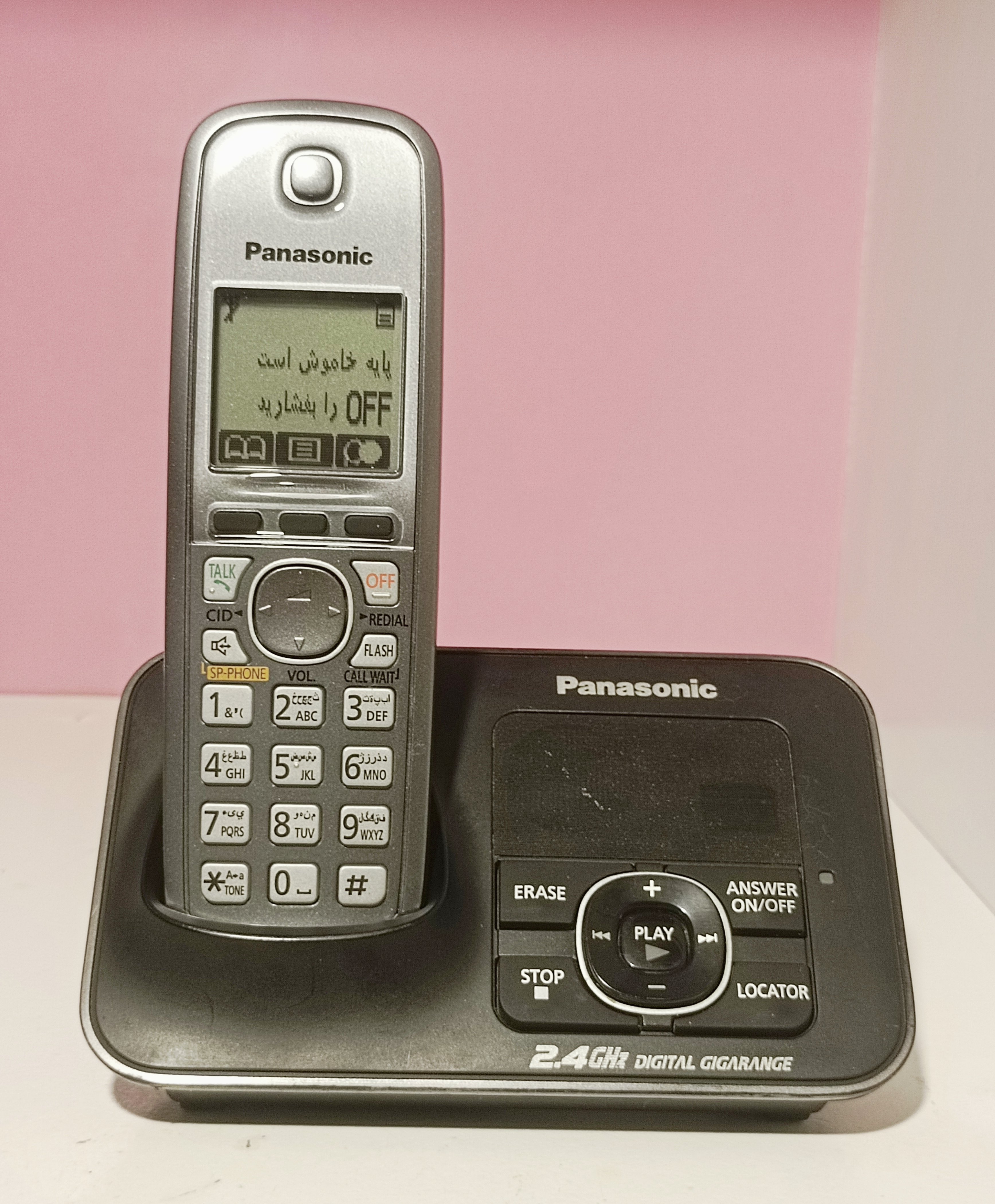عکسها مربوط به همین دستگاه است. گوشی بیسیم نو و نوک مدادی رنگ (پایه جزئی زدگی دارد و مدتی داخل ویترین بوده) قیمت آکبند این محصول بیشتر از ۵ میلیون تومان است. مدل 3721 ساخت مالزی، مدلی بادوام، باکیفیت و شناخته شده است. مشخصات و امکانات: کیفیت صدای عالی گوشی و اسپیکر - آداپتور فابریک و باطری نو، سیستم منشی تلفنی تمام دیجیتال ۱۸ دقیقهای- نمایش تعداد پیغام ها روی پایه بیسیم - دارای منوی فارسی، انگلیسی و عربی، بلندگو روی گوشی بیسیم - شمارهگیری روان و راحت - حالت Silent یا حالت شب - تنظیم دلخواه صدای زنگ و تنوع زنگهای مختلف - تکنولوژی بهبود کیفیت صدا - قابلیت انسداد تماسهای ورودی ناخواسته چراغ نمایش برای تماسهای ورودی - زنگ پلی فونیک ۳۰ ملودی / ۱۰ آهنگ روی گوشی - قابلیت نصب به دیوار یا پایه میز #الکترونیک #پاناسونیک #تخفیف_ویژه #خرید_آسان #ارسال_سریع #فروش_خدمات_اساسی_الکترونیک