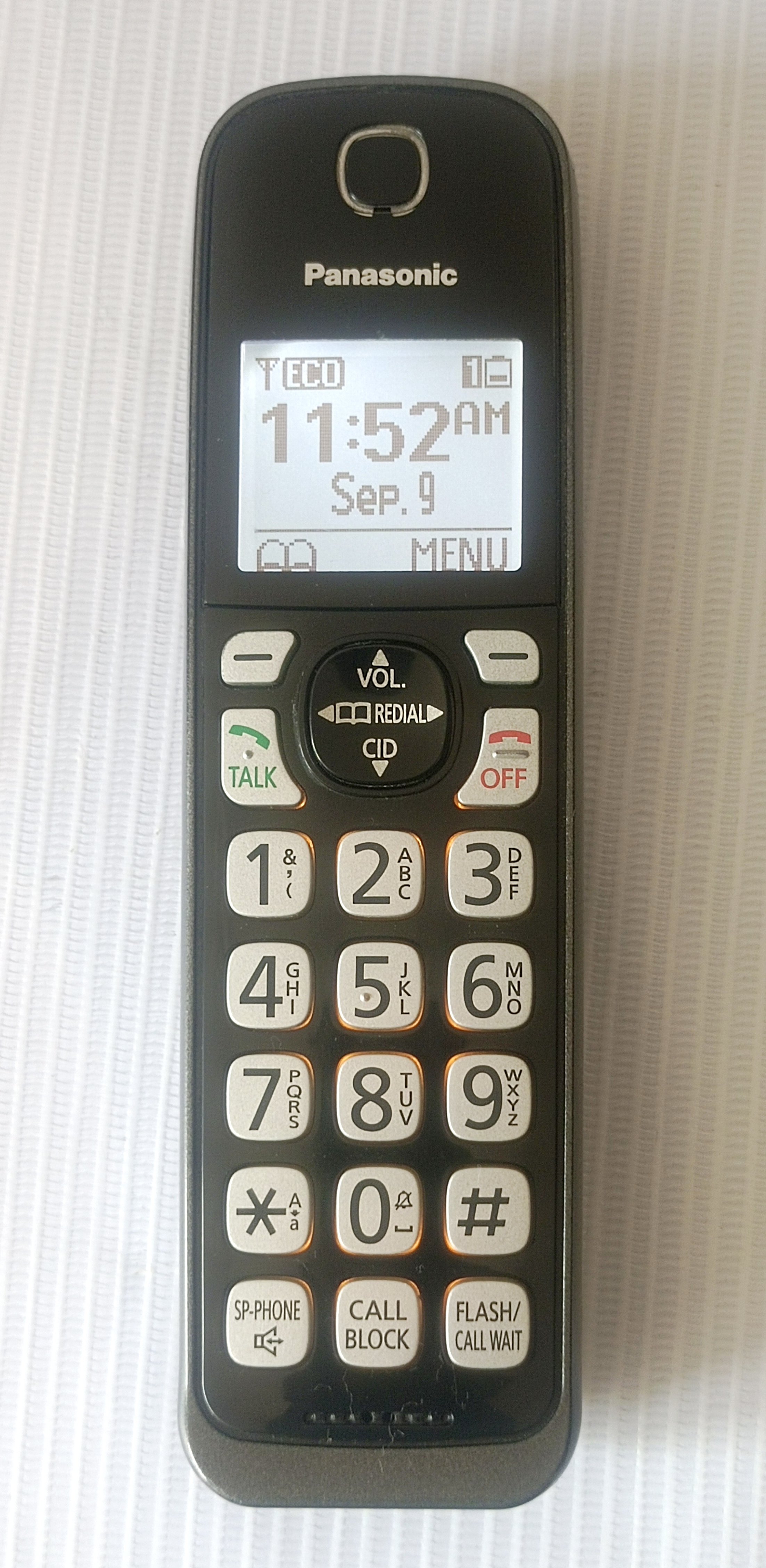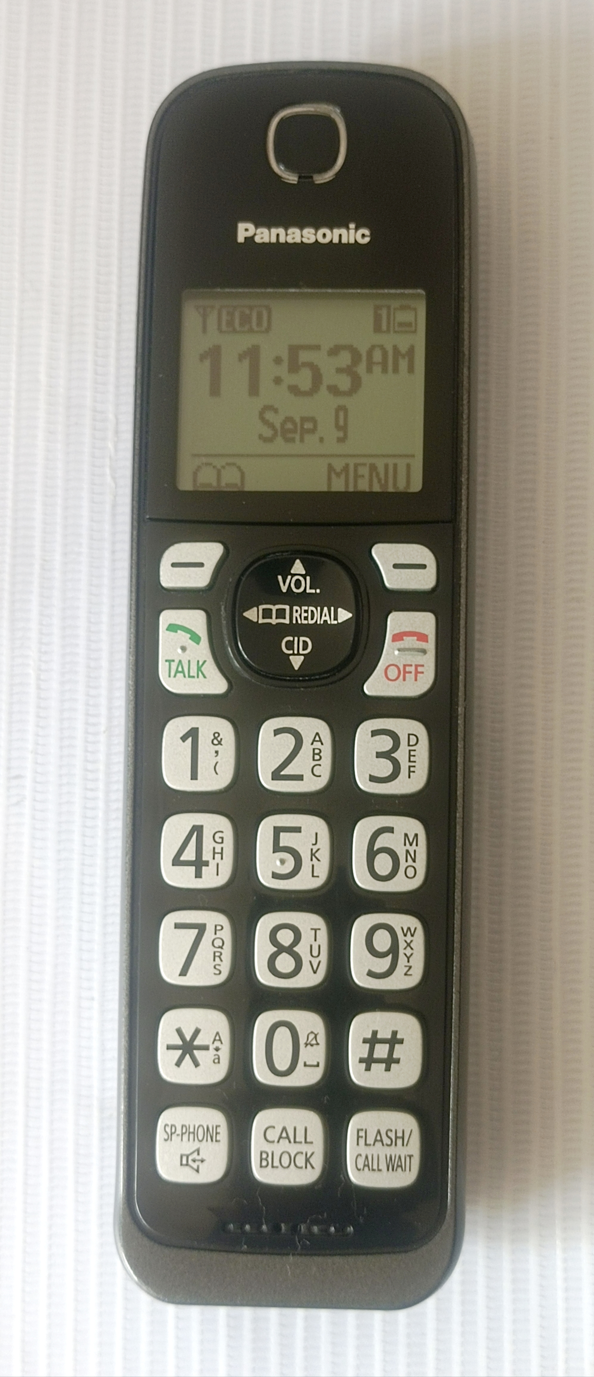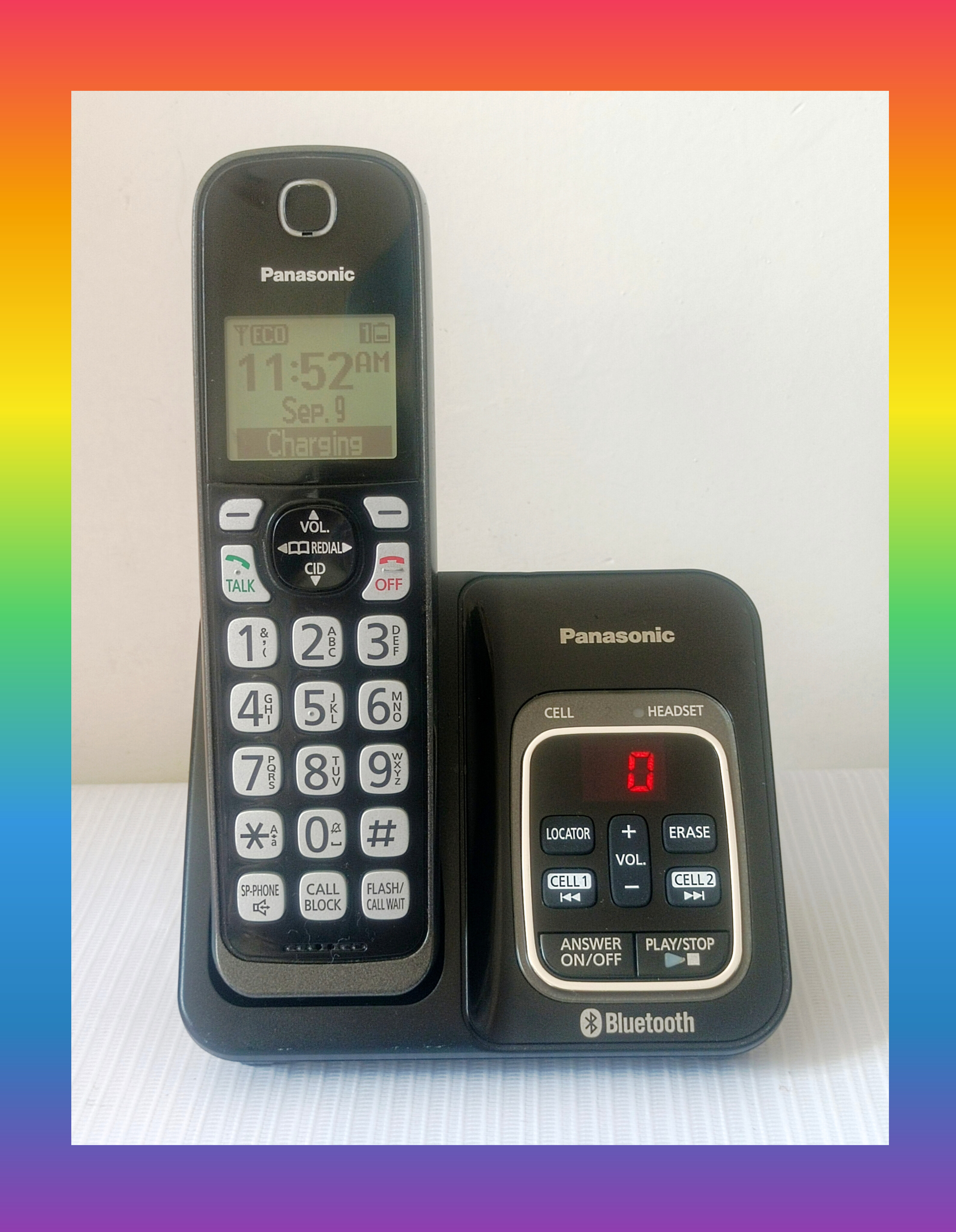 عکسها مربوط به همین دستگاه است. دستگاه کاملا سالم، تمیز، بدون خط و خش با کیفیت عالی صدای رفت و برگشت گوشی و اسپیکر با شمارهگیری روان و راحت با باتری نو و آداپتور فابریک، محصولی بسیار با کیفیت و شکیل ساخت مالزی به سفارش آمریکا است. برخی از مشخصات و امکانات این مدل در ادامه بیان شده است: - صفحه نمایشگر بزرگ با کالر آیدی گویا- دارای قابلیت بلوتوث یا همان link2cell برای اتصال به موبایل، هندزفری بی سیم و…- منشی تلفنی با قابلیت ضبط 18 دقیقه ای پیغام ها و امکان تغییر صدای منشی- نمایشگر تعداد پیغامها بر روی پایه تلفن- دارای بلک لیست اختصاصی با قابلیت مسدود کردن شماره های مزاحم و یا تبلیغاتی- پشتیبانی از تکنولوژی DECT 6.0 و فناوری پیشرفته ECO - حافظه ذخیره سازی 3000 شماره این میزان یک رکورد بین تمامی گوشیهای بی سیم است.