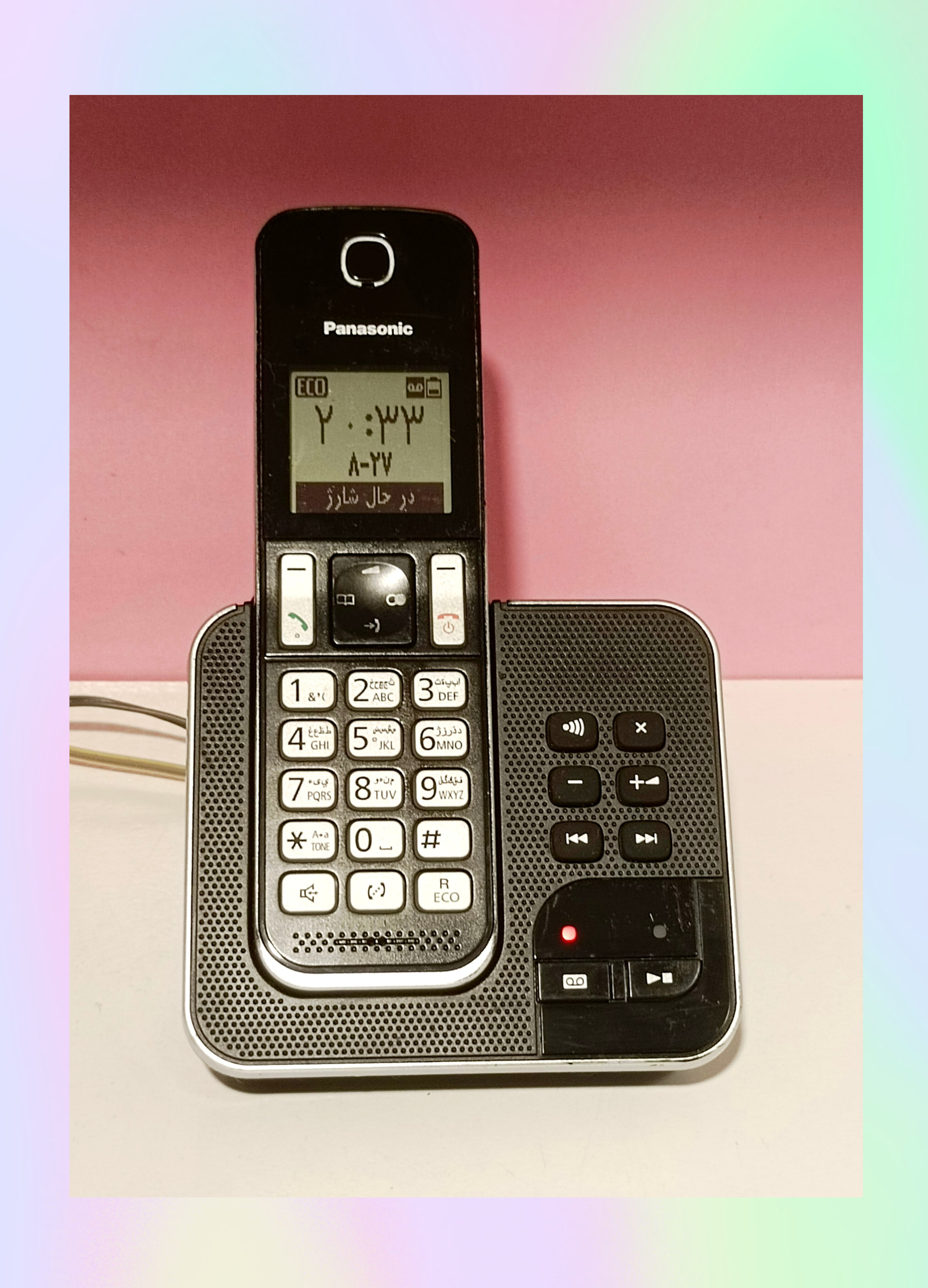 عکسها مربوط به همین دستگاه است. این مدل نسبتاً جدید و قیمت آکبند آن حدود ۸ میلیون تومان است. برخی از مشخصات و امکانات: ساخت مالزی، دارای منوی فارسی، انگلیسی و عربی، کاملا سالم با یک سال ضمانت، برد داخلی ۵۰ متر برد در فضای باز ۳۰۰ متر، منشی دار با قابلیت ضبط ۳۰ دقیقهای پیام تماسگیرنده، شمارهگیری روان و راحت، دارای دفترچه تلفن با قابلیت ذخیره ۱۲۰ مخاطب، دارای نمایشگر ۱٫۸ اینچی با رزولوشن ۶۸*۱۰۳ پیکسل و نور پسزمینه، دارای اسپیکر، با صفحه کلید با قابلیت چرخش در منو و همچنین نور پسزمینه در کلیدهای شمارهگیر، دارای کالر آیدی با حافظه نگهداری ۵۰ شماره، قابلیت شمارهگیری سریع در ۹ شماره، مجهز به سیستم DECT و ...