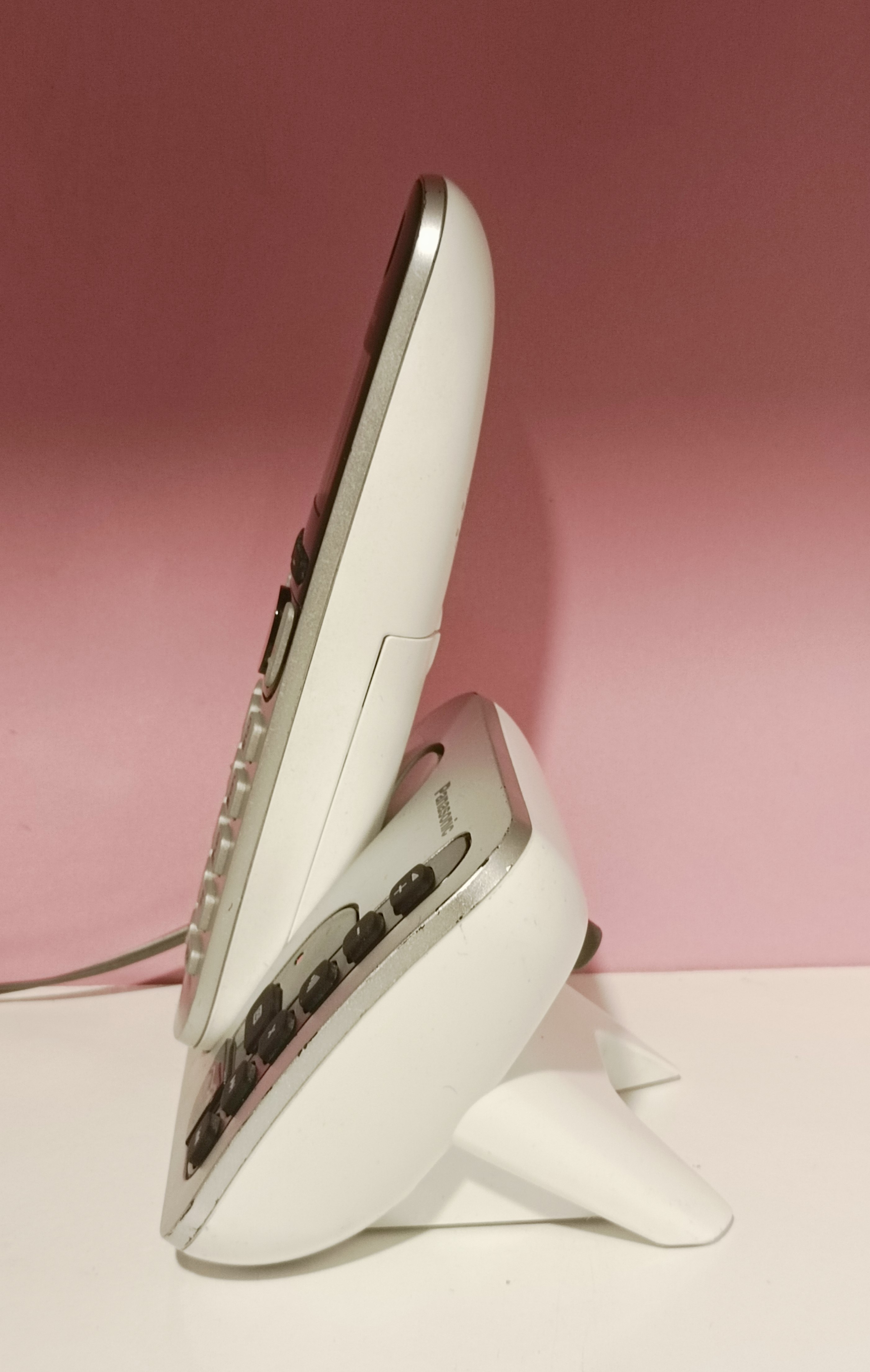 عکسها مربوط به همین دستگاه است. قیمت آکبند این مدل حدود پنج تا پنج و نیم میلیون تومان است. تلفن استوک، کاملا سالم به همراه باطری نو و آداپتور فابریک و با یک سال ضمانت است. مشخصات و امکانات: کیفیت عالی صدای رفت و برگشت گوشی و اسپیکر، سیستم پیامگیر دیجیتال با قابلیت ذخیره ۱۸ دقیقهای پیام، کالر آیدی گویا، قابلیت ذخیره 30 شماره تلفن در لیست سیاه call black - امکان اتصال به دیوار - ذخیره 10 تماس اخر گرفته شده - دارای سیستم انتظار تماس Hold- دارای سیستم قطع موقت صدا در حین صحبت - دارای سیستم قطع سریع تماس Flash - قابلیت قفل کردن صفحه کلید - دارای حالت Night mode دارای ساعت و آلارم - دارای 15 زنگ برای گوشی بیسیم - دارای سیستم Eco Mode - برد بیسیم ۵۰ متر داخلی ۳۰۰ متر خارجی - دفترچه تلفن ذخیره 50 شماره مخاطب - صفحه نمایشگر 1.6 اینچی FullDot Monochrome و 65 × 103 پیکسل نورانی #الکترونیک #پاناسونیک #بیسیم #تخفیف_ویژه #خرید_آسان #ارسال_به_سراسر_کشور