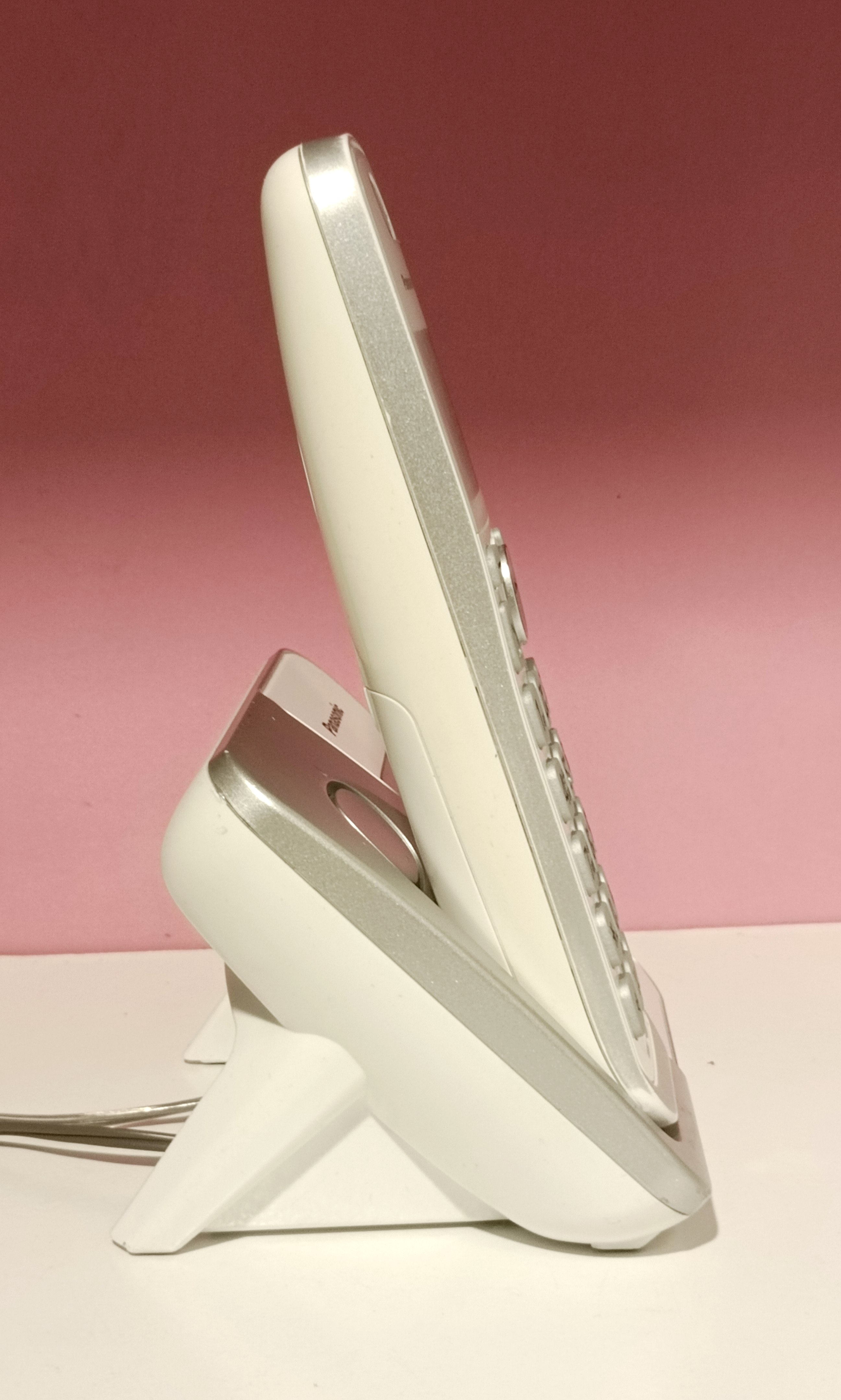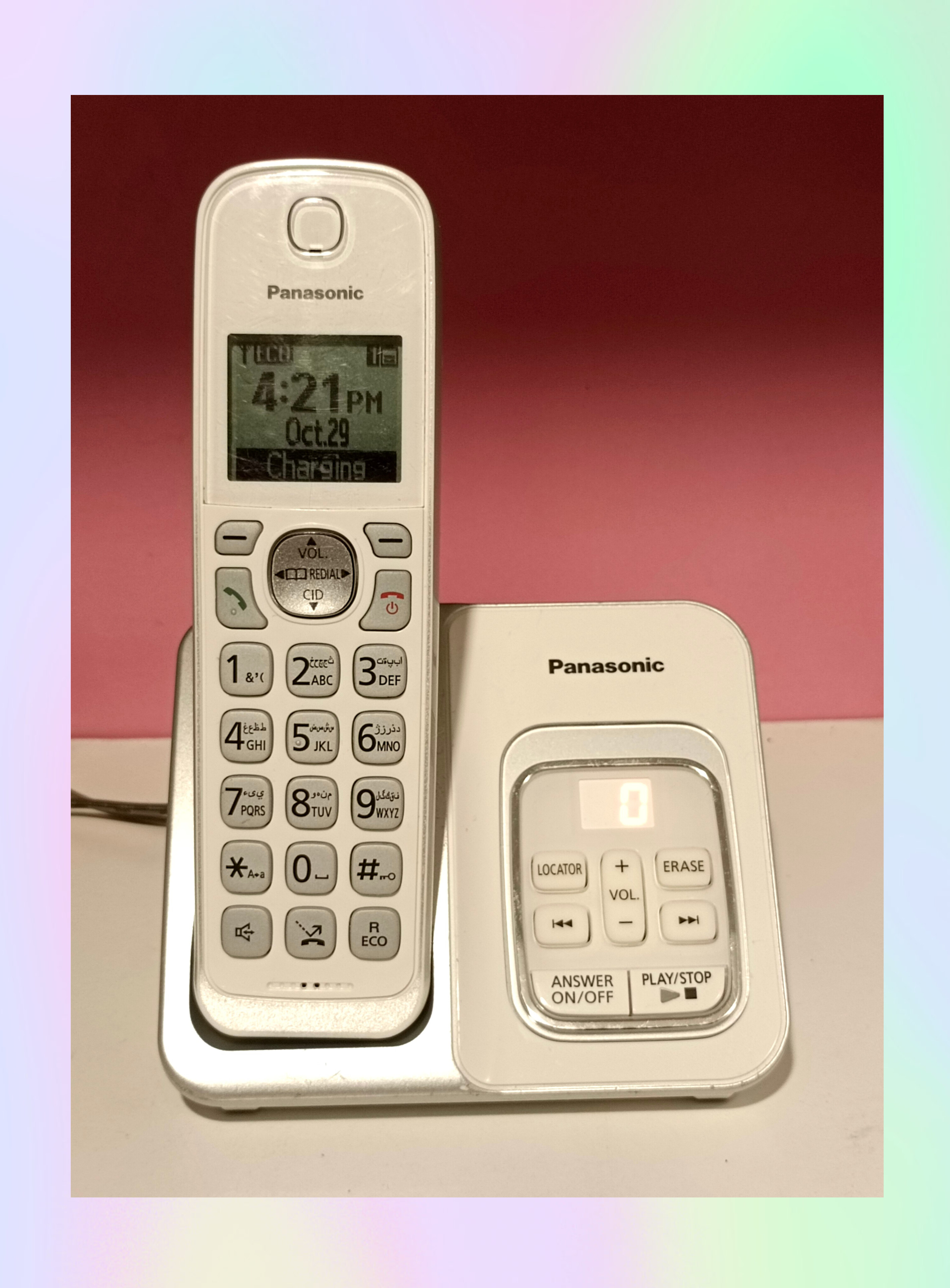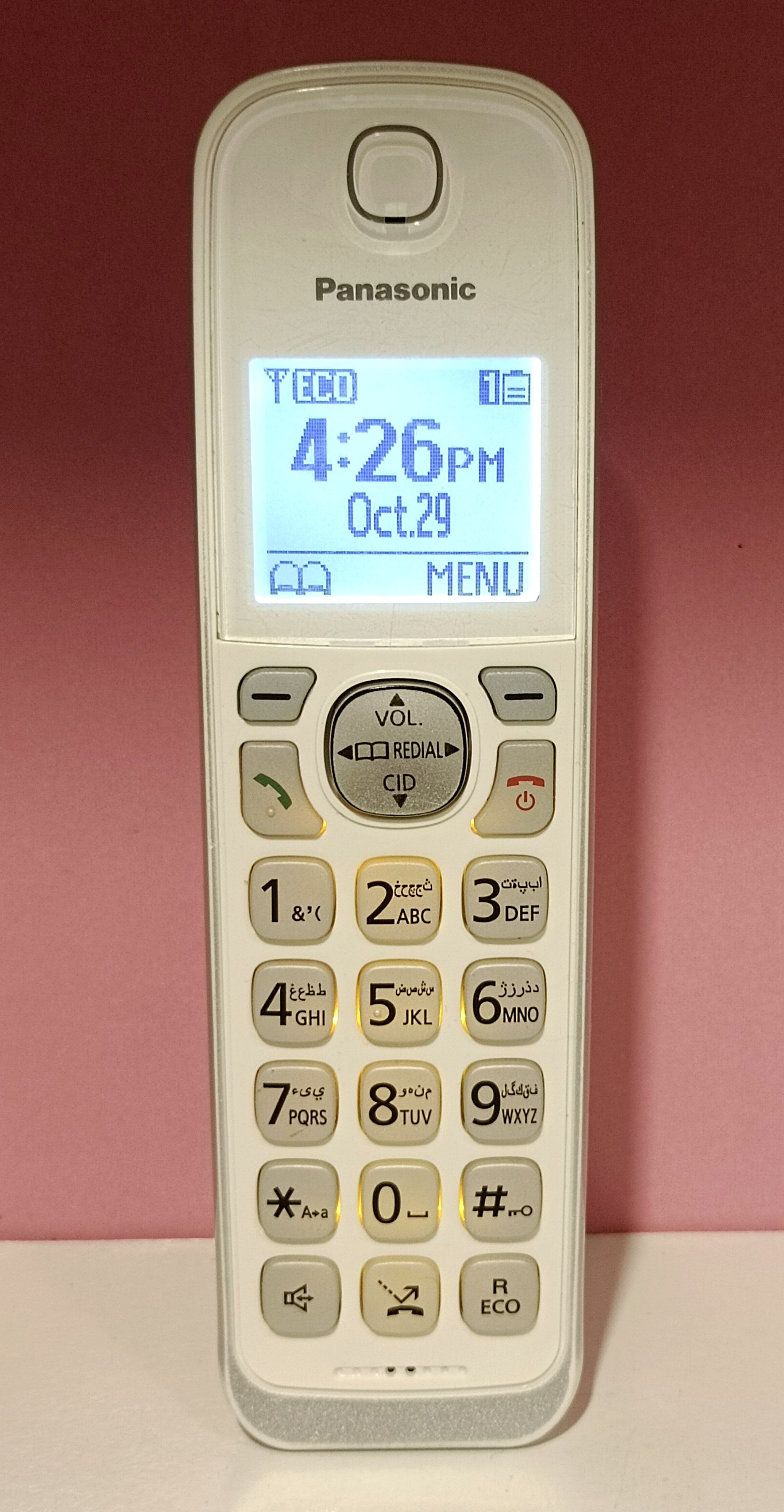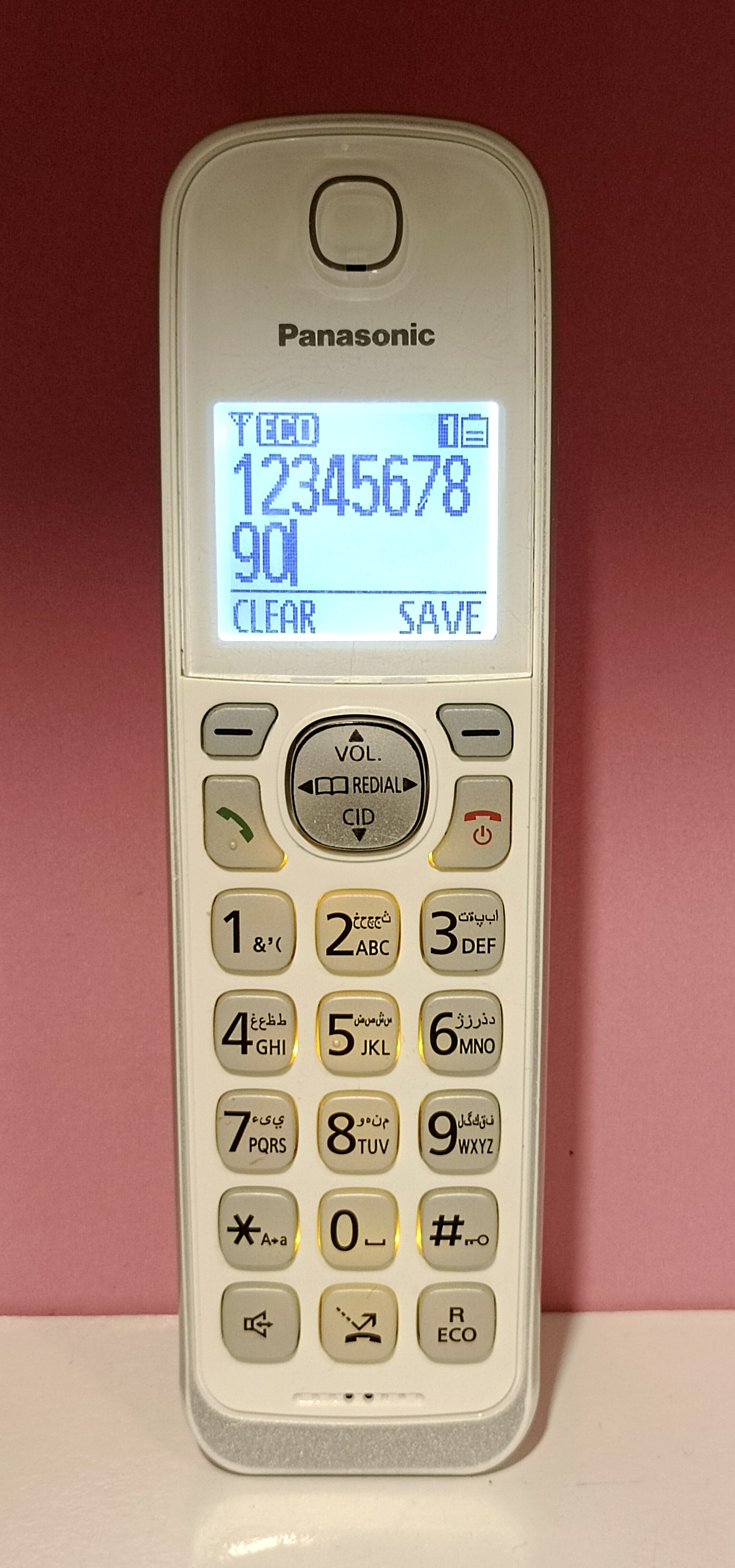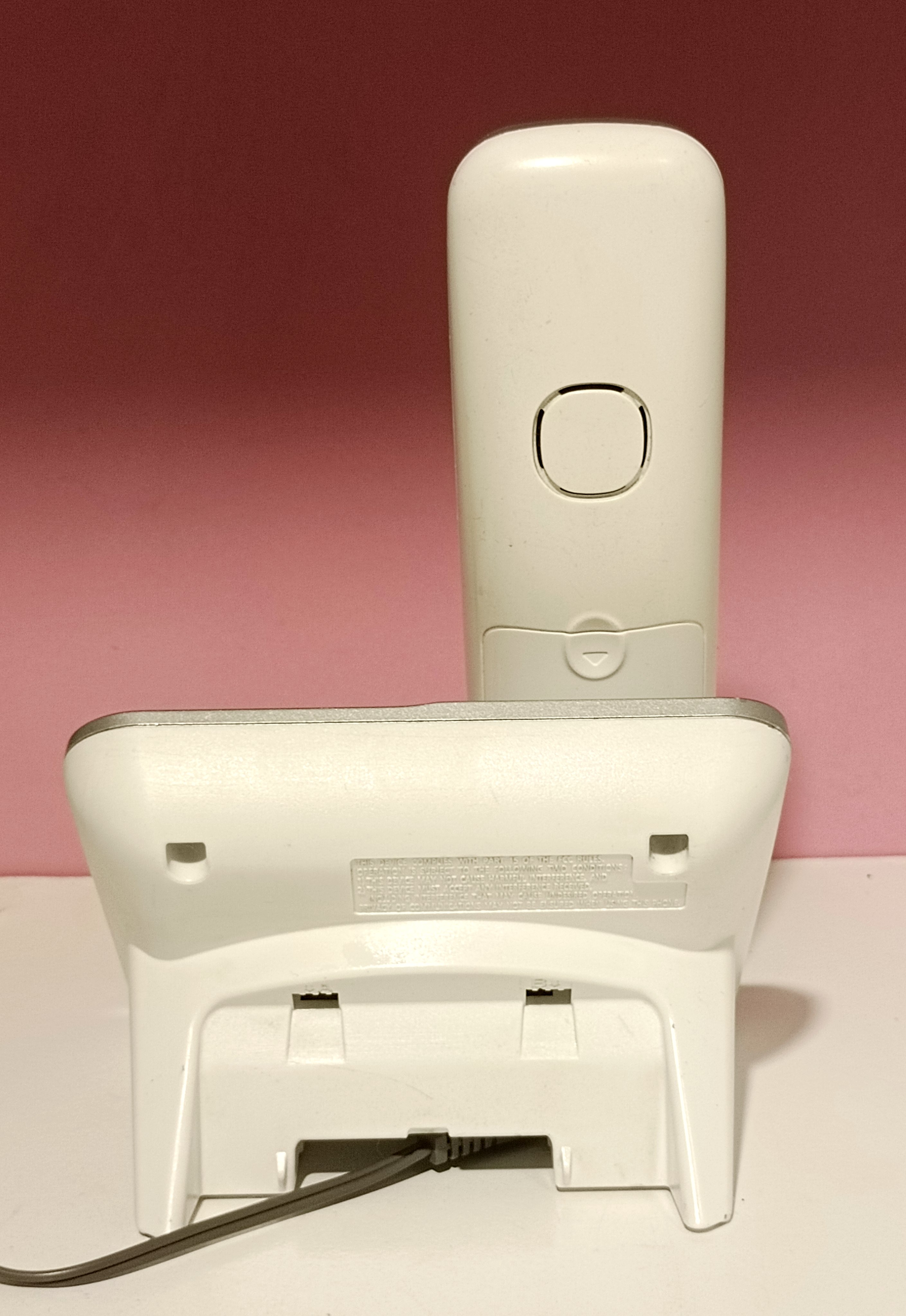 عکسها مربوط به همین دستگاه است. این تلفن استوک، با پیامگیر، کاملاً سالم با گوشی تمیز، نسبتاً جدید، (قیمت آکبند این مدل حدود ۷میلیون تومان است). برخی از مشخصات و امکانات: دارای پیامگیر دیجیتال با ظرفیت ضبط و ذخیره ۱۷ دقیقه ای پیام، گوشی بیسیم خوش ساخت، سبک با شمارهگیری روان و راحت، اسپیکر قوی و باکیفیت، صفحه نمایش 1.6 اینچی با نور پس زمینه سفید، دفترچه تلفن با امکان ذخیره 100 مخاطب، کارکرد هنگام قطعی برق، نمایش تماس گیرنده ( Caller ID )، دارای فناوری DECT 6.0، دارای قابلیت کنفرانس سهطرفه، قابلیت ارتقاء تا 6 عدد تلفن بیسیم، دفترچه تلفن 100 شمارهای، کالر آیدی گویا، قابلیت اتصال به دیوار، برد گوشی بیسیم: 50 متر داخلی - 300 متر خارجی، قابلیت کنفرانس و ...