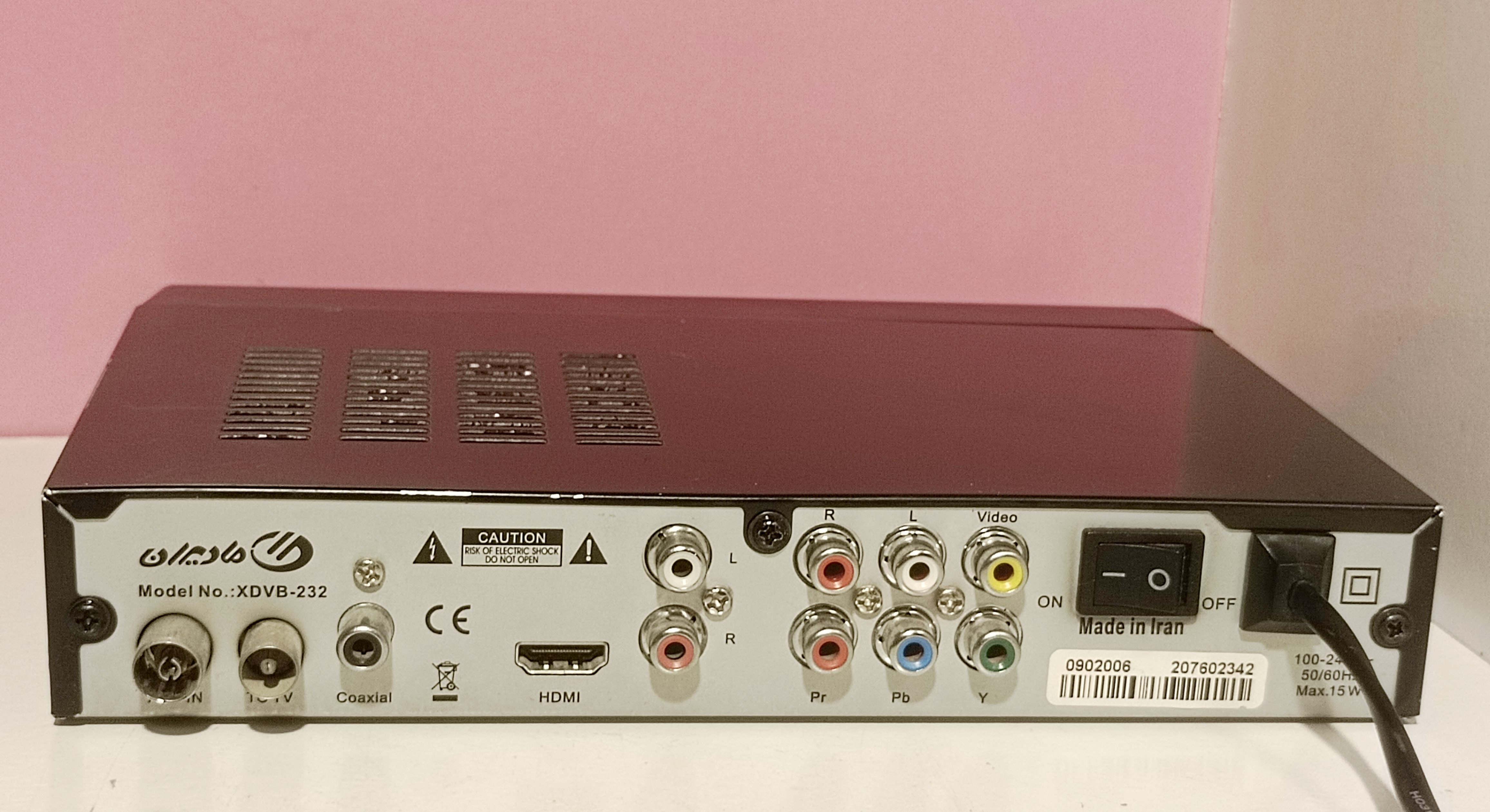 عکسها مربوط به همین دستگاه است. دستگاه کارکرده، کاملا سالم با کنترل نو و یک سال ضمانت. برخی مشخصات و امکانات: تیونر قوی، دارای پورت HDMI و ورودی USB, كیفیت تصویر Full HD- پخش شبکههای HD, قابلیت مرور كانال ها(Scan Mode) دارای قابلیت PVR با USB2.0- ضبط برنامه بر روی فلش مموری USB یا هارد اکسترنال قابلیت پخش فایل 3D از طریق USB2.0 (فلش مموری یا هارد اكسترنال) قابلیت نمایش عكس با فرمت: JPG ,BMP ,PNG قابلیت پخش صدا با فرمت: WMA ,AAC ,MP3 ,OG قابلیت پخش تصویر با فرمت: flv ,trp ,ts ,tp ,dat ,m2ts ,mov ,vob ,avi ,MP4 قابلیت ضبط یك كانال و تماشای كانال دیگر در همان TS (فركانس) نمایشگر شماره کانال یا ساعت، خروجی صدای دیجیتال SPDIF پشتیبانی از چند فرمت صدا و زیرنویس چند زبانه گزینه جستجوی خودکار و دستی کانالها، ریموت کنترل با دکمه های میانبر رنگی، نصب آسان و سهولت كار با منوهای ساده، دارای حافظه قابل برنامهریزی برای روشن-خاموش و ضبط برنامه ها بصورت یک مرتبه ای، روزانه و هفتگی #الکترونیک #ایکس_ویژن #تخفیف_ویژه #خرید_آسان #ارسال_به_سراسر_کشور