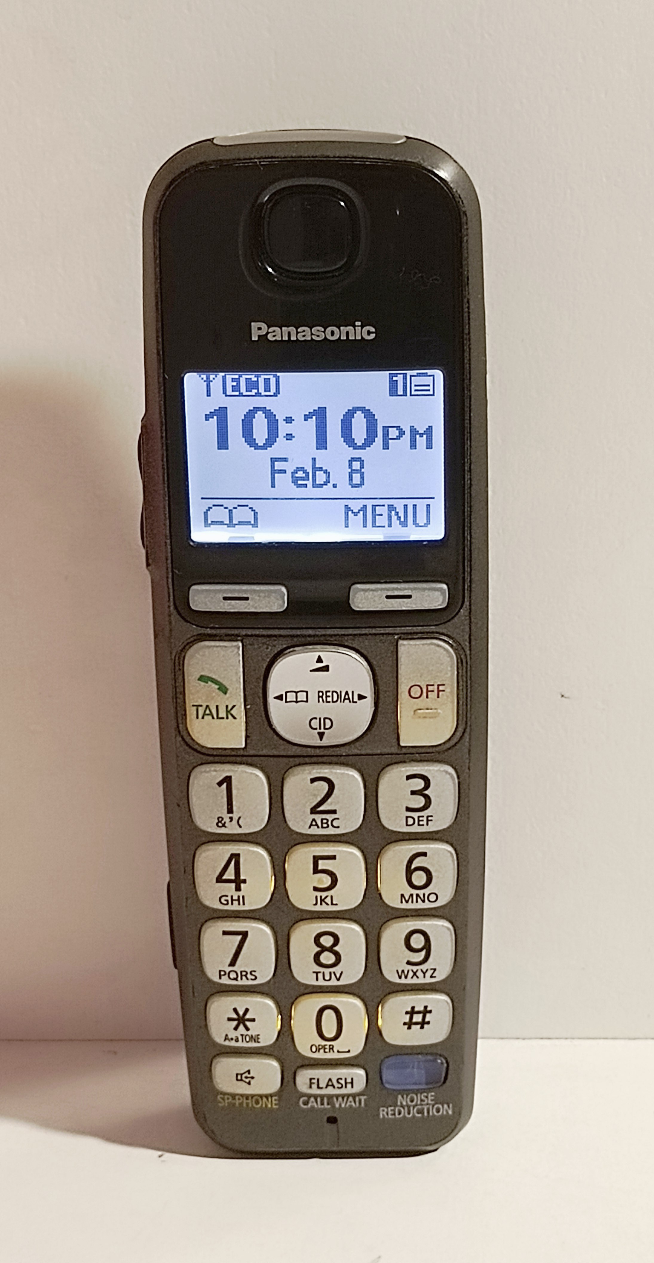 دارای Night Mode، دارای یک نمایشگر با ابعاد 1/8 اینچ و رزولوشن تصویر 65×103 پیکسل است. نور پسزمینه نمایشگر، به رنگ سفید است تا در مواقعی که نور محیط کم یا تاریک است، نوشتهها و شمارهها، خوانا باشند. از مهمترین ویژگیهای KX-TGE210 وجود قابلیت DECT 6 PLUS است که بر کیفیت و امنیت مکالمهها، تاثیر بسیار زیادی دارد. فناوری ECO نیز بر امواج رادیویی تلفن تاثیر گذاشته و محیطی سالمتر را فراهم میکند. قابلیت Night Mode، مسدود کردن تماس و دفترچه تلفن هوشمند اشاره کرد. همچنین پشتیبانی از سمعکهای استاندارد، میتواند برای افراد کمشنوا، ویژگی مفیدی محسوب شود.