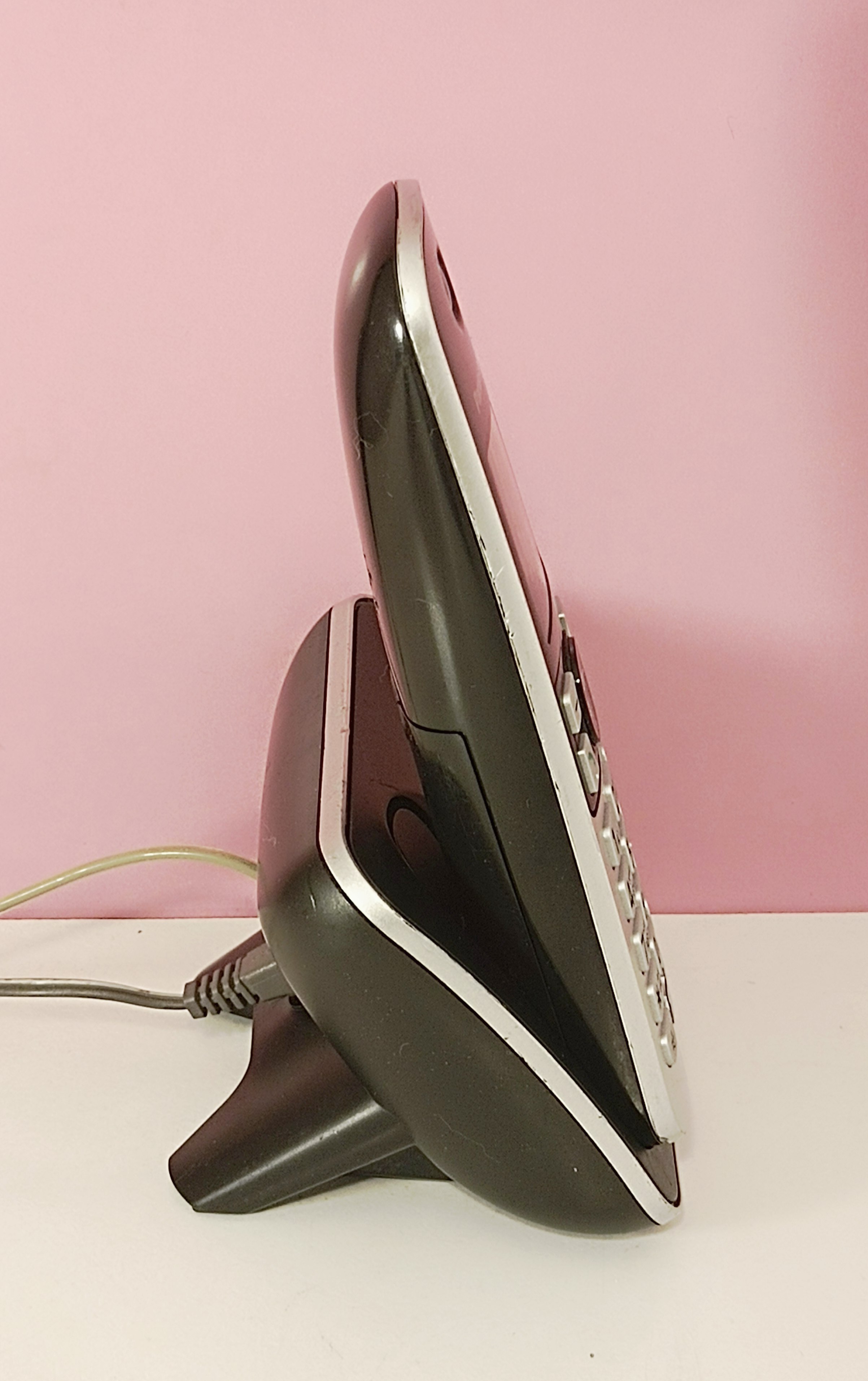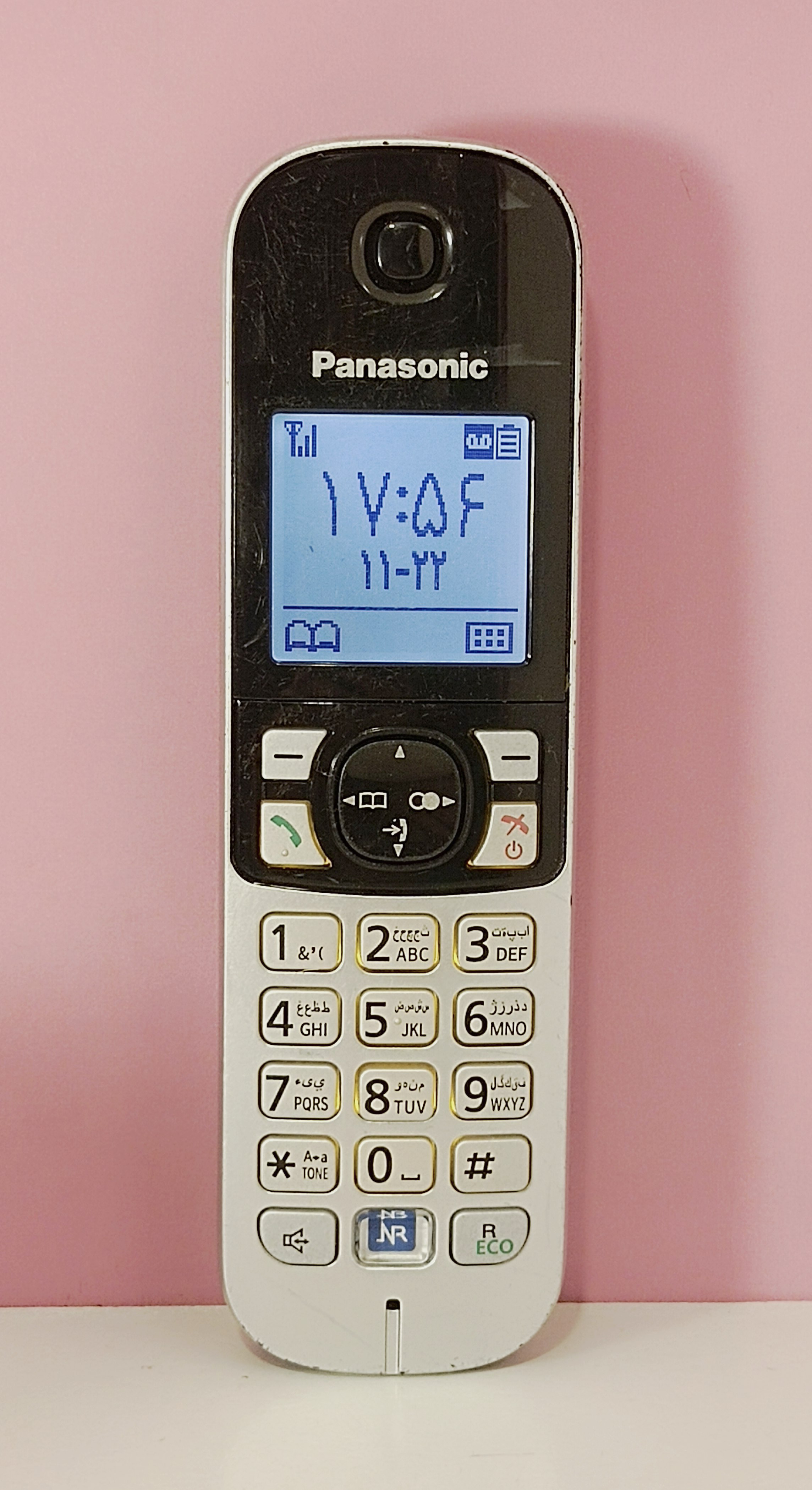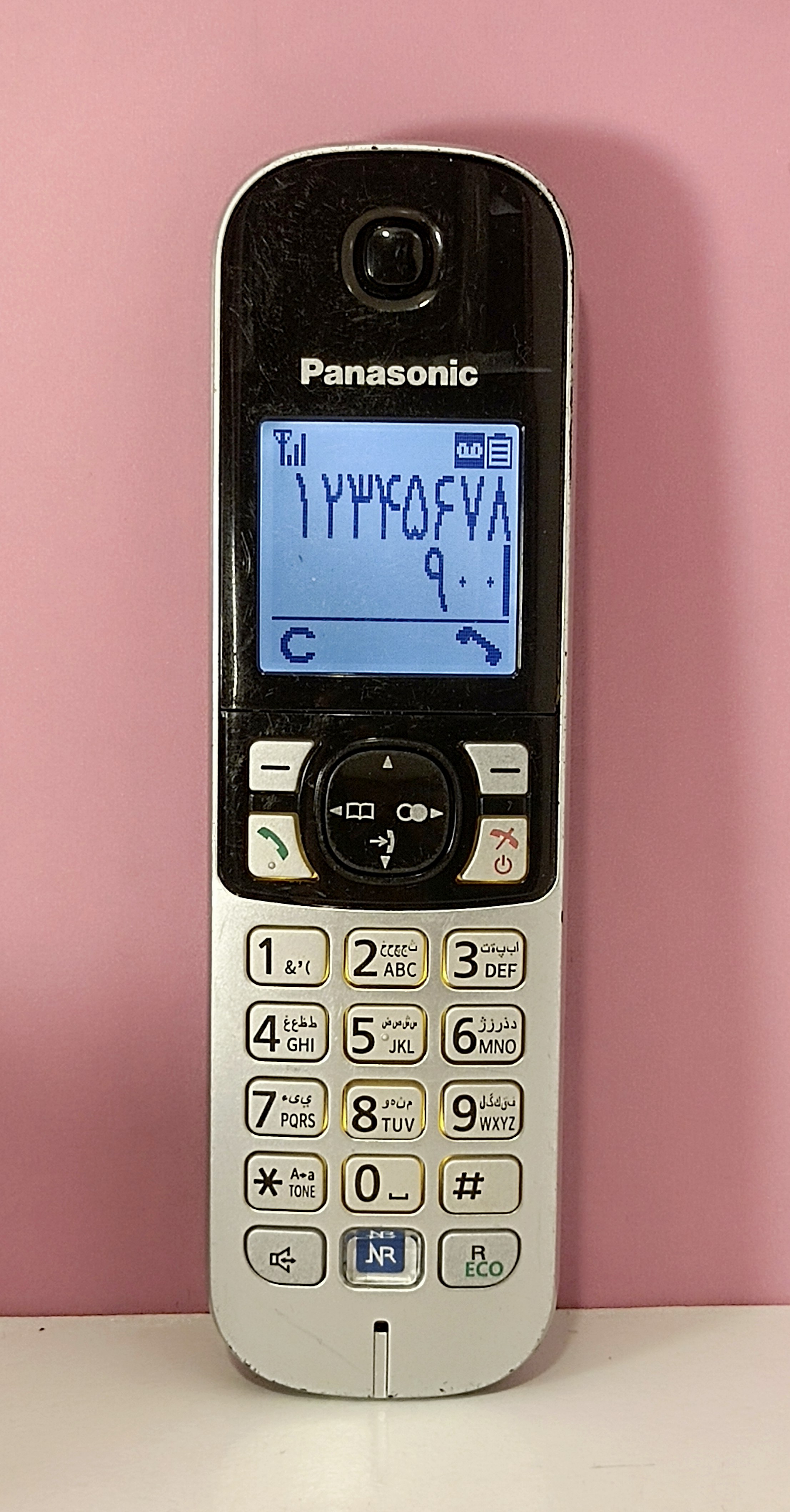 عکسها مربوط به همین دستگاه است. تلفن استوک، بدون کارتن، کاملا سالم با باطری نو و آداپتور فابریک. (قیمت آکبند این مدل حدود هفت و نیم میلیون تومان شده). برخی از مشخصات و امکانات: صفحه نمایشگر بزرگ با نور پس زمینه سفید، دارای کالر آیدی، شمارهگیری روان و راحت، منشی تلفنی(پیامگیر) دیجیتال با ۱۸ دقیقه ظرفیت ضبط و ذخیره پیام مخاطبان - آنتن دهی مناسب گوشی بیسیم- دارای حالت Night Mode- قابلیت استفاده در نبود برق- مسدود کردن تماسهای مزاحم- دارای دفترچه تلفن قابلیت ذخیره ۱۰۰ شماره- قابلیت مشاهده ۵۰ شماره آخر، دارای اسپیکر با حالت برطرف کردن صداهای مزاحم و ... داد