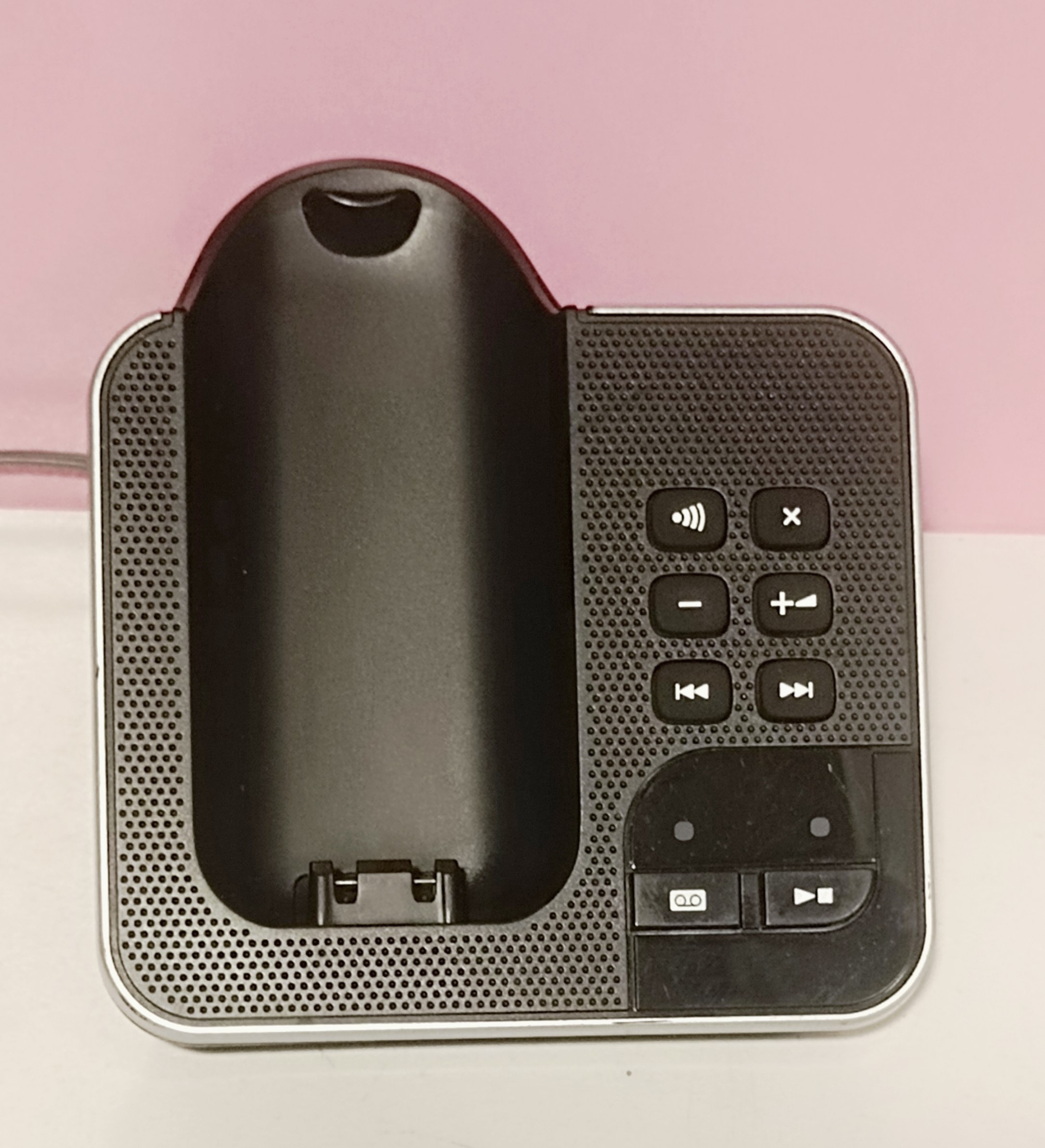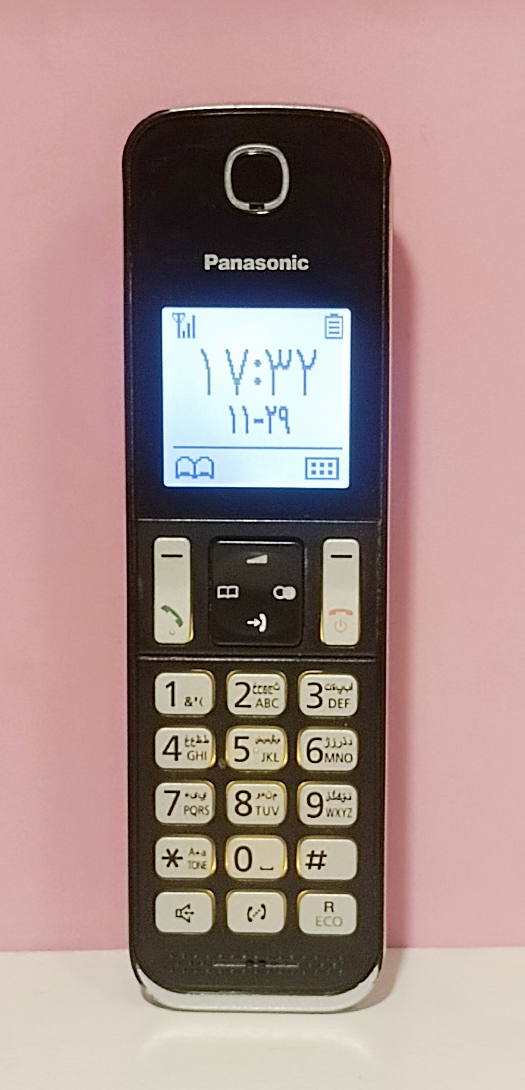 عکسها (۱۲ تصویر) مربوط به همین دستگاه است. گوشی استوک تمیز (با کمترین خط و خش)، بدون کارتن و با ضمانت است. این مدل نسبتاً جدید و قیمت آکبند آن حدود هشت میلیون تومان است. برخی از مشخصات و امکانات: ساخت مالزی، دارای منوی فارسی، انگلیسی و عربی، کاملا سالم با یک سال ضمانت، کارکرد در زمان قطع برق، دارای کالر آیدی ( نمایش شماره تماس گیرنده)، برد داخلی ۵۰ متر برد در فضای باز ۳۰۰ متر، منشی دار با قابلیت ضبط ۳۰ دقیقهای پیام تماسگیرنده، شمارهگیری روان و راحت، دارای دفترچه تلفن با قابلیت ذخیره ۱۲۰ مخاطب، دارای نمایشگر ۱٫۸ اینچی با رزولوشن ۶۸*۱۰۳ پیکسل و نور پسزمینه، دارای اسپیکر، با صفحه کلید با قابلیت چرخش در منو و همچنین نور پسزمینه در کلیدهای شمارهگیر، دارای کالر آیدی با حافظه نگهداری ۵۰ شماره، آلارم پیشرفته قابلیت شمارهگیری سریع در ۹ شماره، مجهز به سیستم DECT و ...