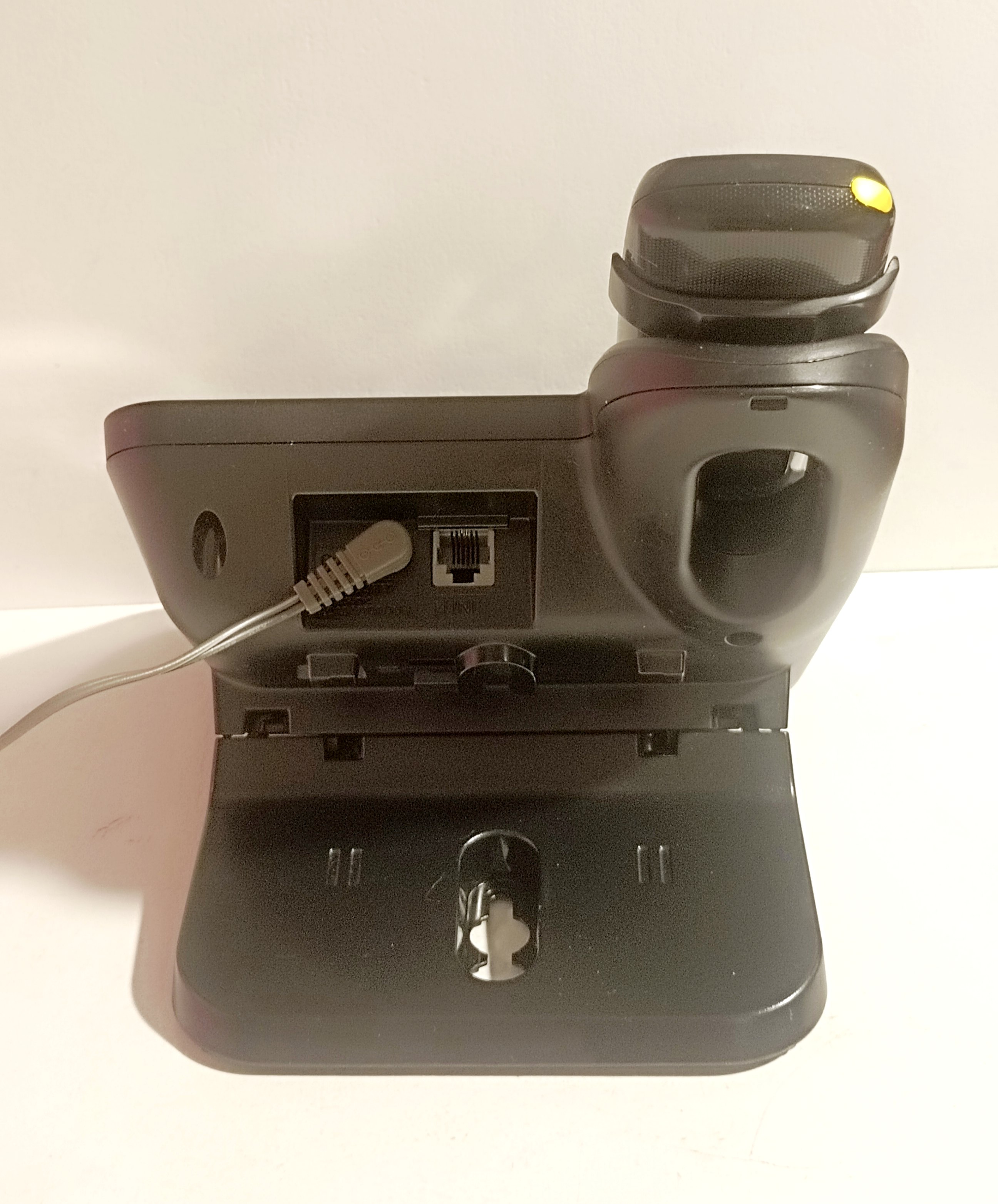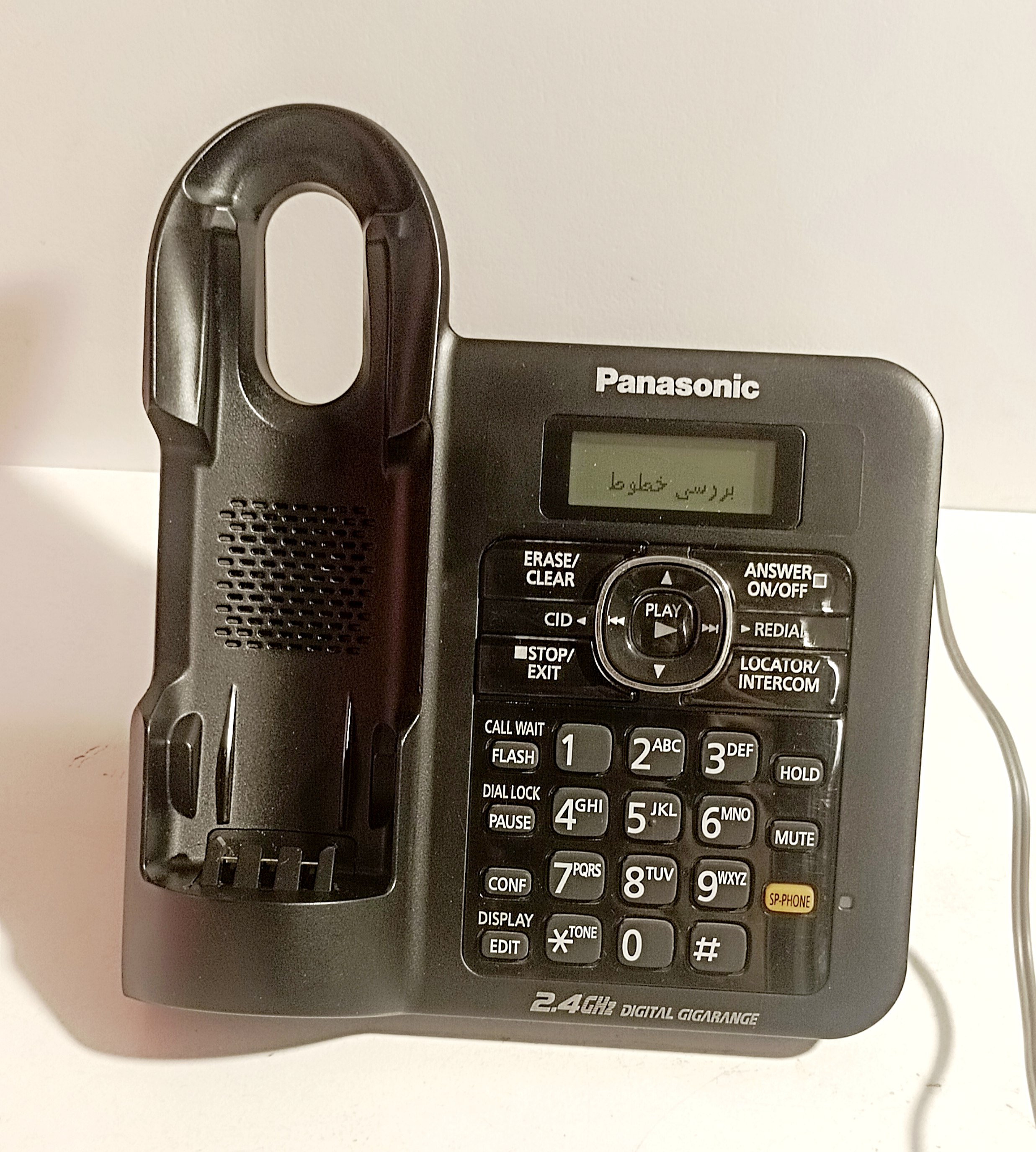 عکسها (۱۱ تصویر) مربوط به همین دستگاه است. قیمت آکبند این مدل حدود ۱۷ میلیون تومان شده. این مدل ساخت مالزی دارای منوی فارسی و دستگاهی خوشساخت، شناخ و بادوام است. دستگاه تمیز، با کمترین خط و خش، کاملا سالم و با یک سال ضمانت همراه با آداپتور فابریک و باطری نو میباشد. برخی از مشخصات و امکانات: فرکانس کار؛ ۲.۴ گیگاهرتز، برد گوشی بیسیم؛ ۵۰ متر داخلی و ۳۰۰ متر در فضای باز، دفترچه تلفن با قابلیت ذخیره ۱۰۰ شماره با نام، منشی تلفنی با قابلیت ضبط تا ۱۸ دقیقه، امکان ارتباط و مکالمه گوشی با پايه بدون اشغال شدن خط تلفن، امکان برقراری تماس از طريق پايه، قابليت کنفرانس، نور پس زمینه صفحه کلید، دارای 30ملودی /10 آهنگ روی گوشی، دکمه locator - حالت Night Mode، قابلیت استفاده در نبود برق، قابلیت انسداد تماس های ورودی، صفحه نمایش دستگاه پایه و گوشی بی سیم با نور سفید یخی، قابلیت نمایش ۵۰ تماس آخر دریافتی به همراه نام و شماره تلفن، نمايشگر ۱,۸ اینچ (۱۰۳x۶۵ پیکسل)قابلیت تنظیم زبان نمایشگر به سه زبان فارسی - عربی - انگلیسی و ...