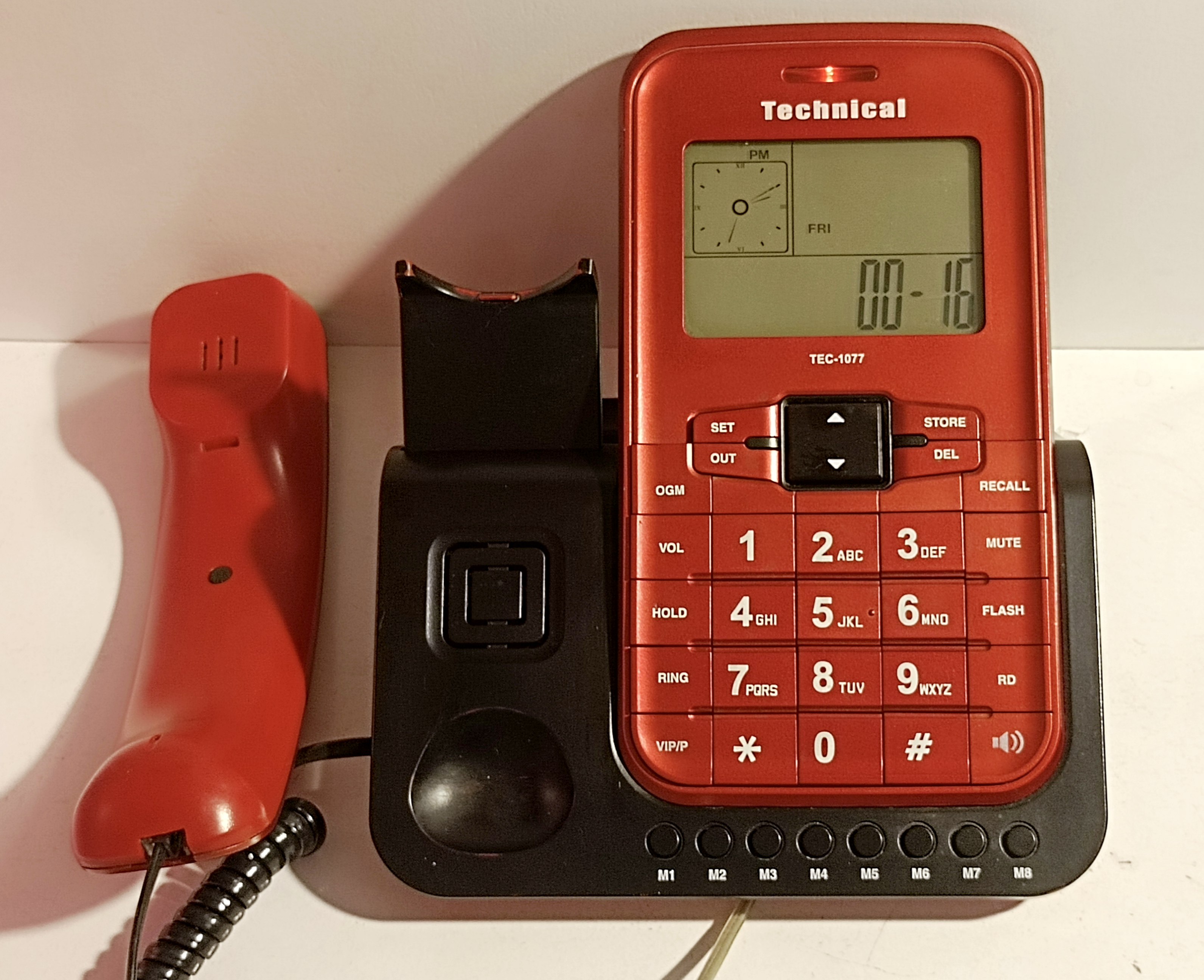 عکسها مربوط به همین تلفن است. قیمت آکبند این مدل نزدیک به دو میلیون تومان شده، گوشی تلفن کارکرده اما کاملاً سالم با کیفیت عالی صدای رفت و برگشت و اسپیکر، برخی از مشخصات و امکانات این مدل: پشتیبانی از سیستم شماره انداز سازگار با مخابرات ایران و تمامی داخلی های آنالوگ مراکز تلفن (کالر آیدی)، شماره انداز گویا و منشی یکطرفه به زبانهای فارسی ,عربی و انگلیسی، قابلیت نمایش ۱۲ شماره و ساعت دایره شکل (طرح کلاسیک) و دماسنج بر روی صفحه نمایشگر، ذخیره ۵۵ تماس دریافتی و تماس خروجی و ۵۵ شماره ویژه، دارای ۸ حافظه تک اشارهای و ۱۲ حافظه دو اشارهای، دارای ۱۳ نوع زنگ بیدارباش معمولی و ۵ نوع اذان، امکان انتخاب نوع صدای صفحه کلید، قابلیت پخش موزیک پشت خط، دارای برنامه مزاحم نشوید، امکان تنظیم صدای زنگ در ۴ حالت، امکان تنظیم صدای گوشی در ۳ حالت، دارای قفل شماره گیری، قابل تنظیم درسه حالت، قابلیت انتخاب سیستم شماره گیری تن و پالس، قابلیت تکرار شماره گیری و تکرار اتوماتیک شماره گیری و ...
