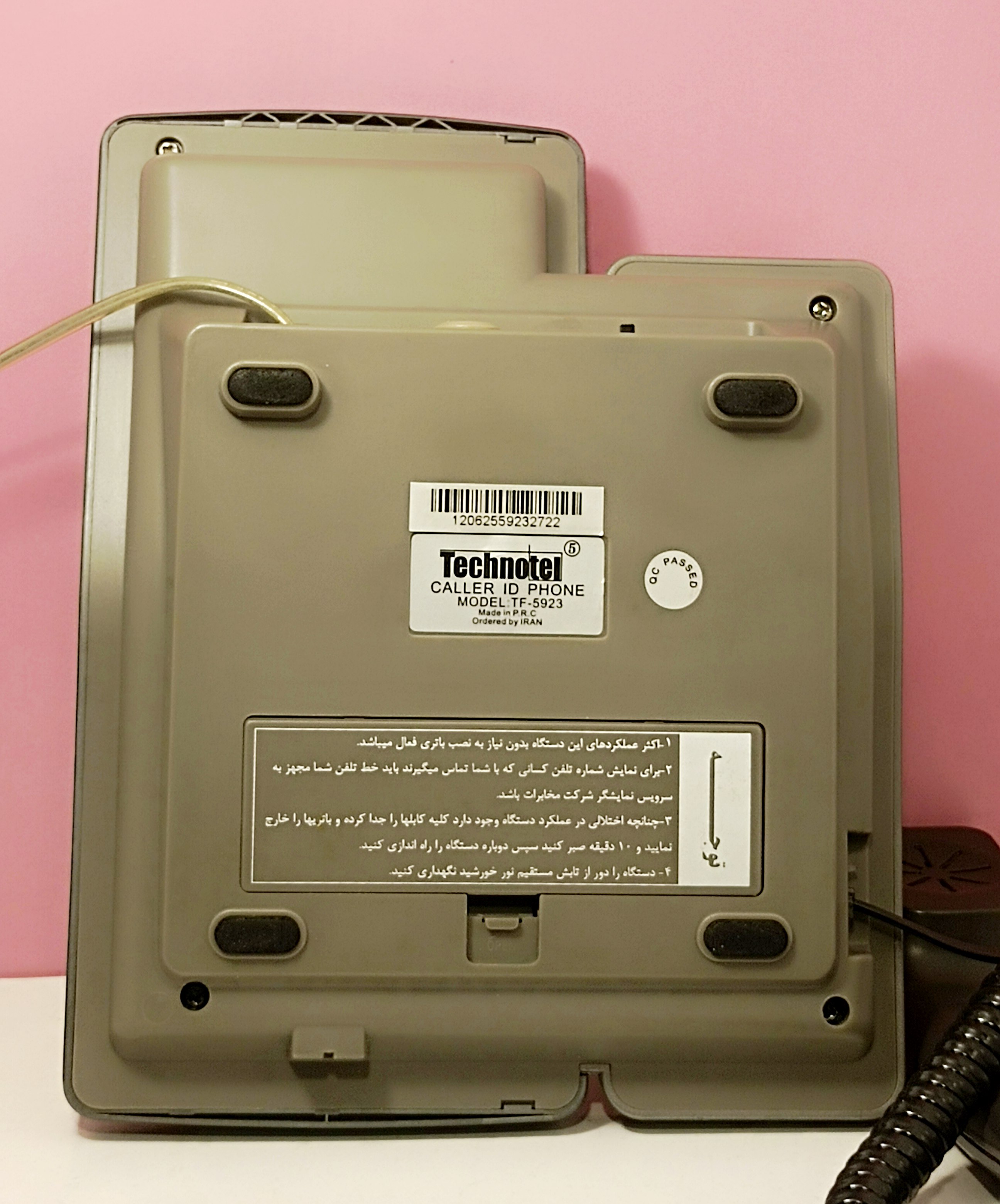 عکسها مربوط به همین دستگاه است. مشخصات و امکانات: امکان تنظیم شدت رنگ نوشتههای صفحه نمایش تا ۵ سطح. ۱۰ حافظه مستقیم شماره گیری سریع. ۲۴نوع زنگ. صفحه نمایش ۱۲ رقمی با ساعت طرح کلاسیک بر روی آن. تکرار آخرین شماره گرفته شده. تکرار خودکار شمارههای اشغال. ۳ نوبت زنگ بیدار باش. ۵ نوبت پخش اذان. موزیک انتظار پشت خط. شمارهگیری قبل از آزاد کردن خط با امکان حذف و یا اصلاح شماره. قفل شماره گیری سه حالته. امکان شماره گیری به روش تن یا پالس. نور پس زمینه صفحه نمایش. دکمه ایجاد مکث یا وقفه در شماره گیری. منشی یکطرفه. اعلام شماره های تماس گیرنده به زبان فارسی، عربی و انگلیسی. قابلیت تنظیم حجم صدای زنگ در دو سطح. دارای آیفون. حفاظت شده در مقابل افزایش ولتاژ لحظه ای و رعد و برق. قابلیت تنظیم حجم صدای بلندگو در سه سطح. ماشین حساب.