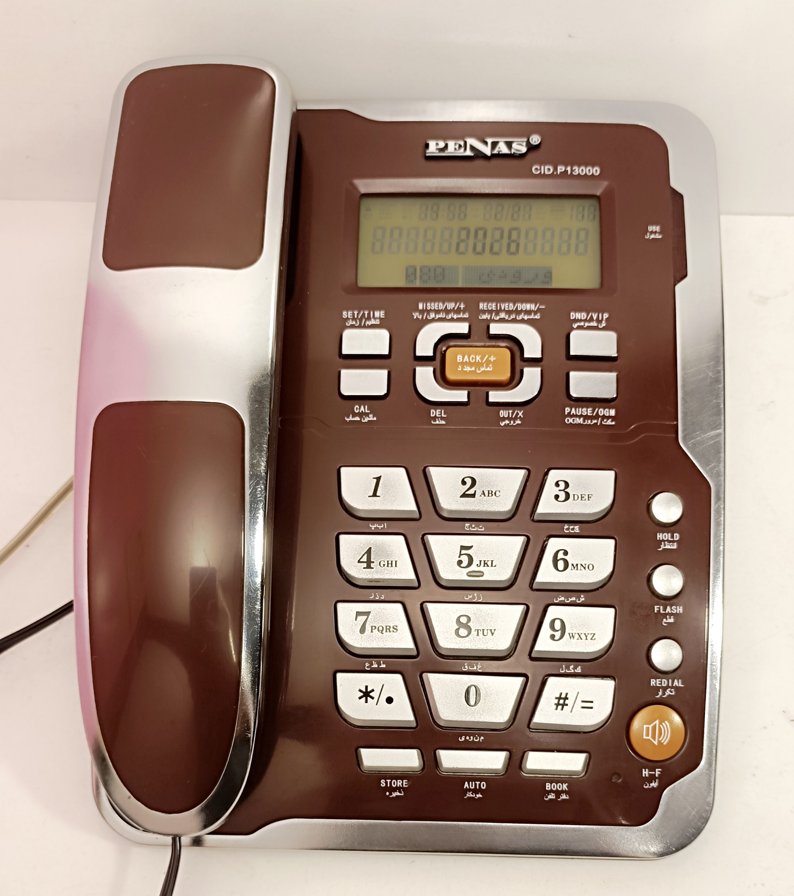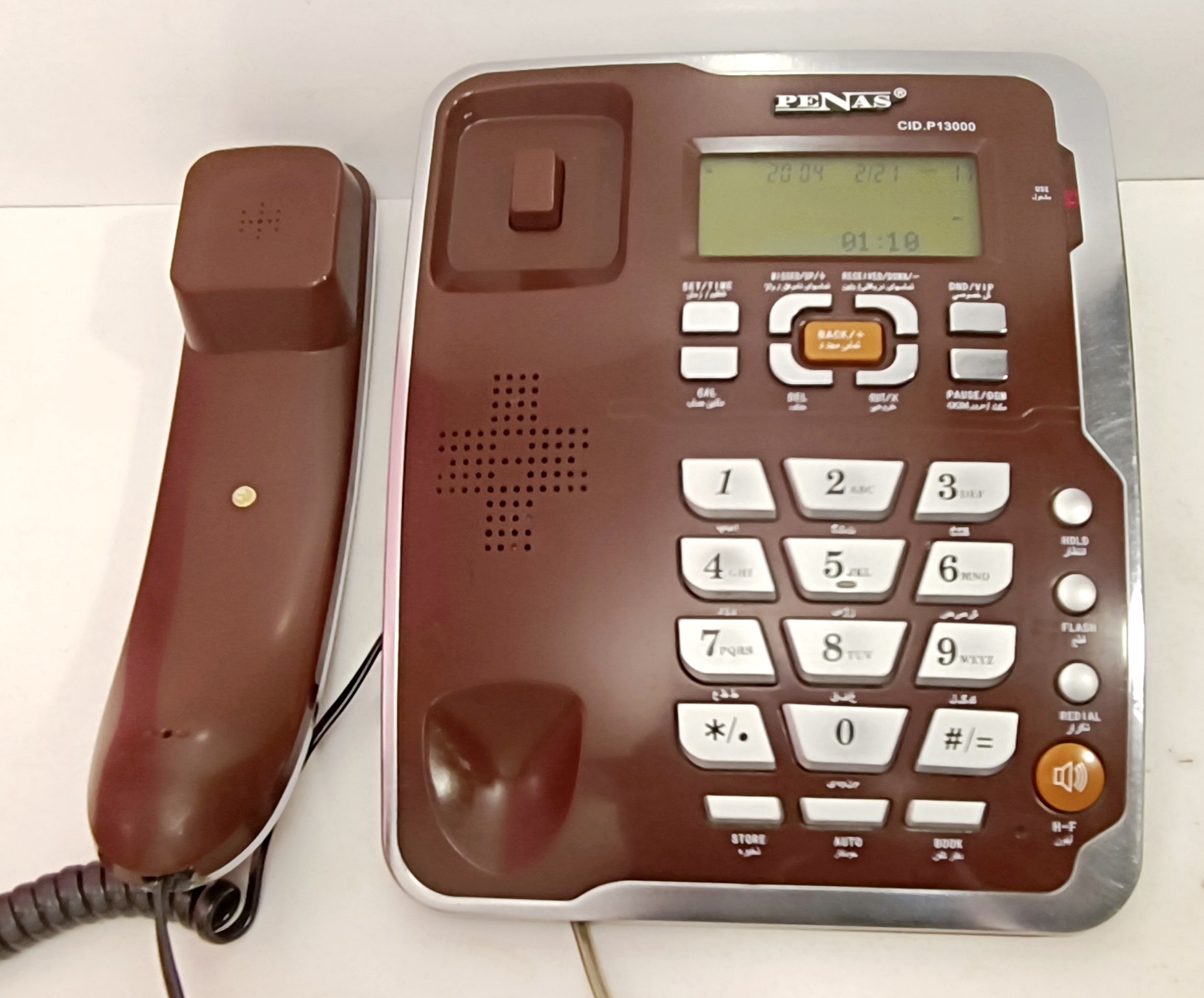 عکسها مربوط به همین دستگاه است. این تلفن کارکرده، در حد نو و کاملا سالم است و یک سال ضمانت دارد. برخی از مشخصات و امکانات: دارای نمایشگر (فارسی)، کالر آیدی، نمایش ساعت، قابلیت تنظیم تاریخ، کلید تنظیم حجم صدای زنگ و کلید انتخاب سیستم شمارهگیری آن و پالس، موزیک انتظار، قفل شمارهگیری سه حالته با کلید، امکان شمارهگیری به روش تن یا پالس، نور پس زمینه صفحه نمایش، دکمه ایجاد مکث یا وقفه در شماره گیری، قابلیت تنظیم قطع صدای زنگ و ولوم زنگ، دارای آیفون، حفاظت شده در مقابل افزایش ولتاژ لحظهای و رعد و برق، قابلیت تنظیم حجم صدای بلندگو و تنظیم صدای صفحه کلید. #الکترونیک #پناس #تخفیف_ویژه #خرید_آسان #ارسال_به_سراسر_کشور شش